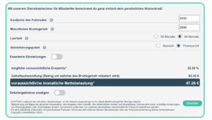 Bitte vergewissere dich nach dem Einbinden auf deiner Webseite, dass auch der Punkt „Berechnungsdetails anzeigen“ komplett auf deiner Webseite angezeigt wird.